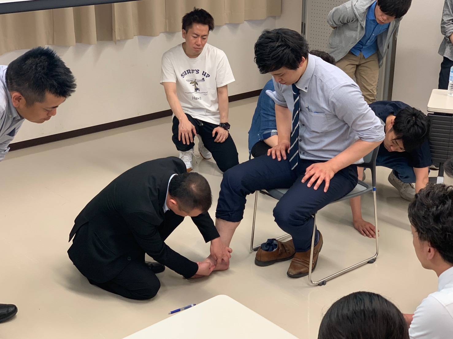 セミナーでは実技を含めた評価や、エコー(超音波検査)の使い方を学びました。