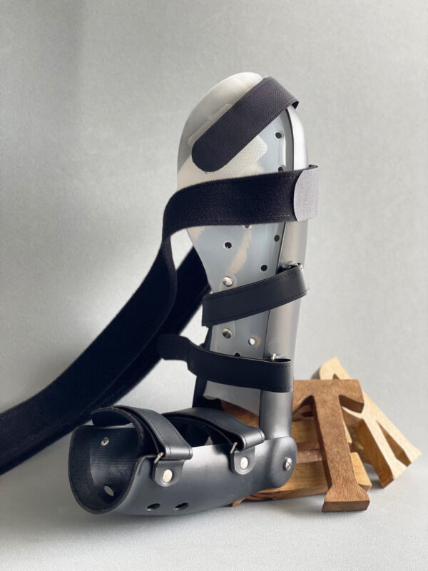 伸展・屈曲フリーのオクラホマ継手を使用し、従来の肘装具より軽量に製作されてます。